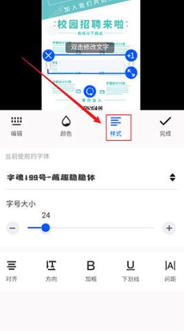 2、进入模板编辑页面,点击底部的加字选项;