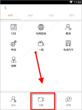 2、翻到电网栏。下面下方会有直播显示,点击进入界面即可