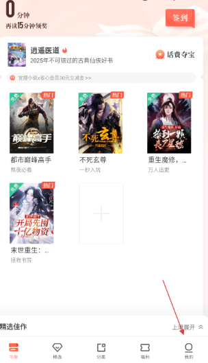 1、打开宜搜小说APP,点击底部导航栏我的,进入个人页面。