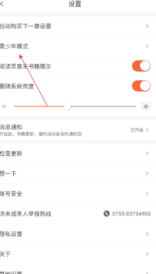 3、在设置界面里,找到青少年 模式选项并点击,进入青少年 模式页面。