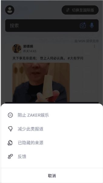 2、然后点击阻止或减少就可以减少推荐此类新闻的次数