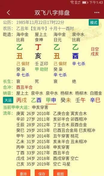 看排盘分析,双飞八字排APP提供八字干支、十神、五行、大运年等专业命理信息,快来下载专属于你的八字排盘。