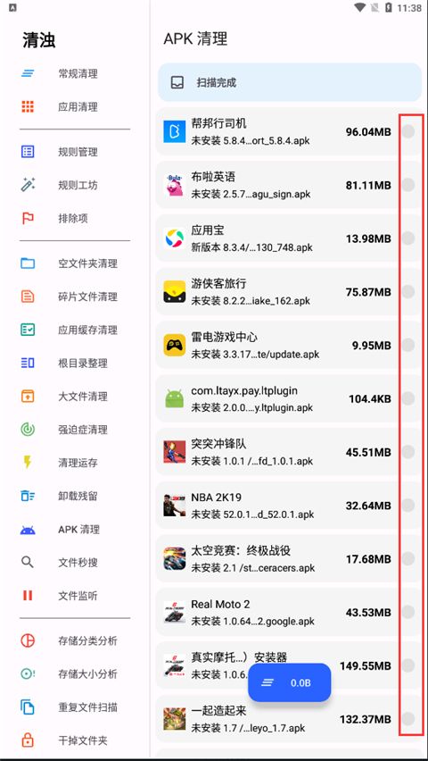 扫描出你的手机中全部apk,我们即可进行删除只需要点击你需要删除的软件或者游戏;