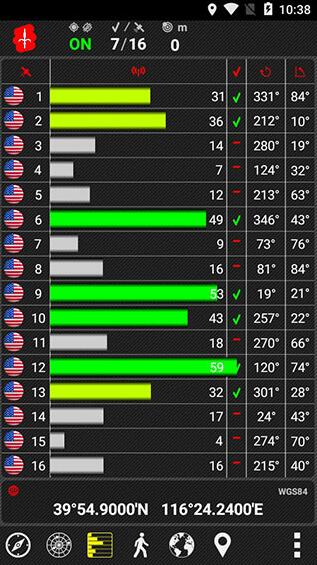 1、显示当前接收到的GPS卫星数量,信号强度,方位,显示你的GPS坐标,指南针功能