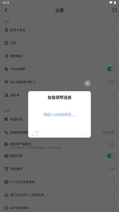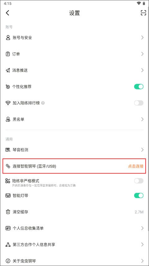 2、在设置界面中选择通用中的"连接只能钢琴"。