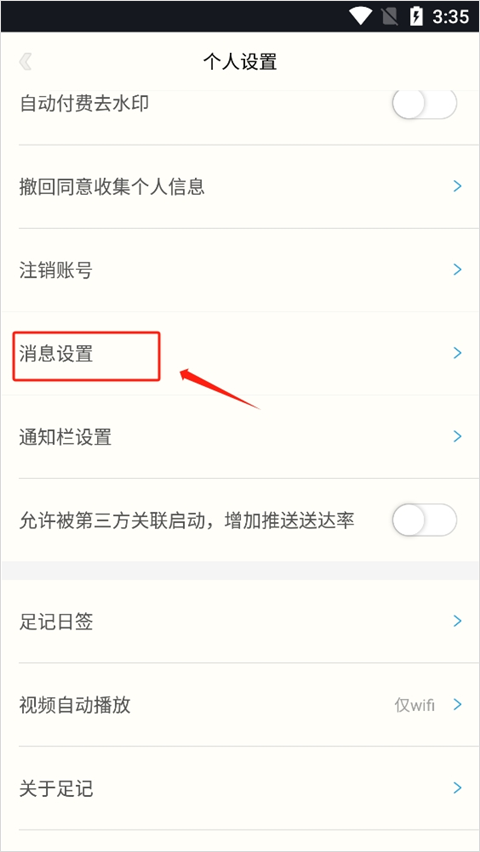 2、在"个人设置"页面选择"消息设置"选项。