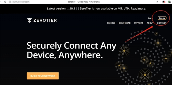 进入ZeroTier One官网点击sign up,进入注册账号页
