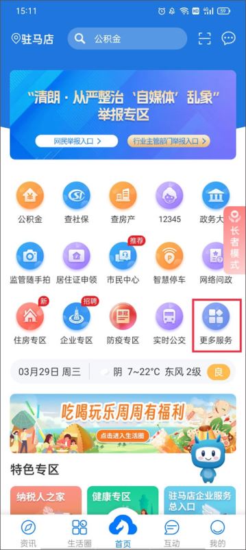 1、进入并开始浏览首页,软件上方有很多的功能服务,点击更多服务。