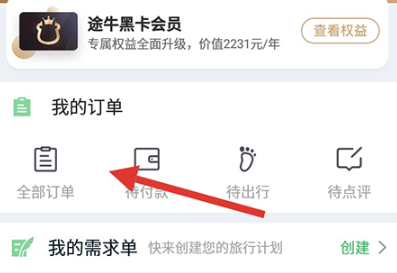 1、首先我们进入到途牛旅游APP的个人中心,在该界面点击"全部订单"。
