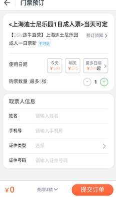 3、最后进入到"门票预订"界面,在该界面填写上正确信息点击右下方的"提交订单"按钮即可。