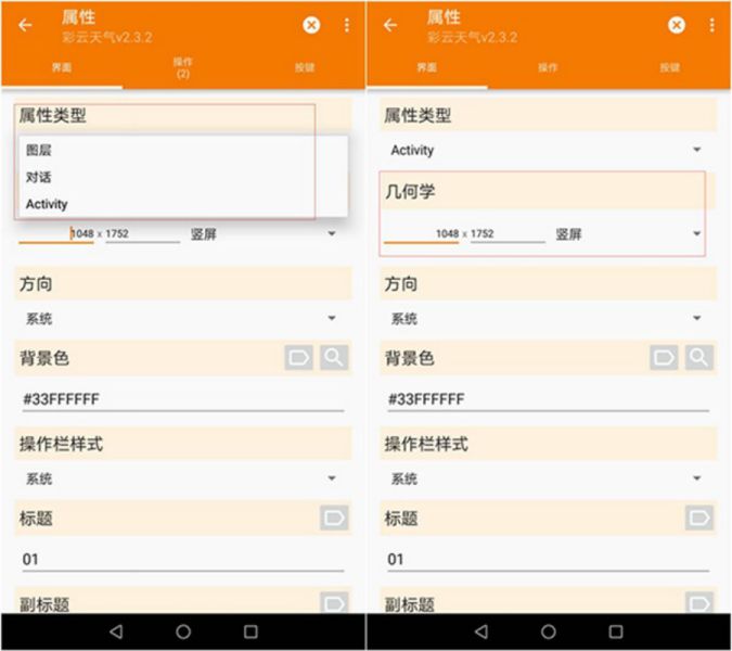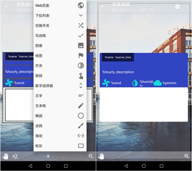 右下角的放大镜按钮可以用来切换场景的状态(1.设置场景相对于手机屏幕的布局,2.设置场景内的元素)