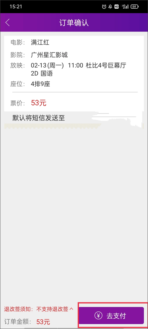 电影开始前还会收到提醒短信,提示电影时间和地点等信息。