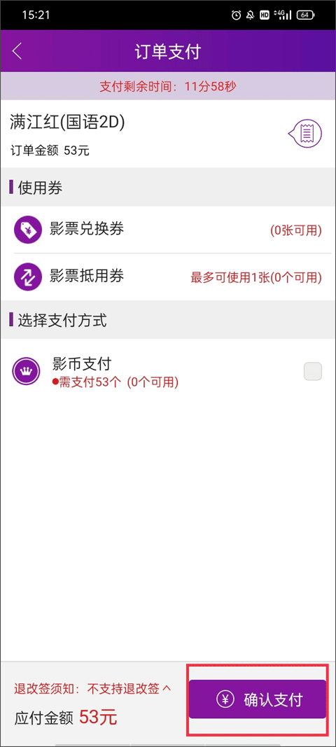 如果订票后没有收到电子影票,可进入手机客户端软件"订 购夹",更新订单状态后查看订单详细信息,如果成功出票,将显示电子票信息。