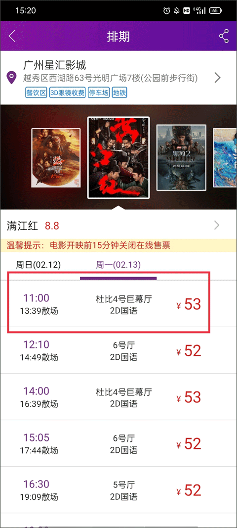 2.提前选座订票,远离排队的烦恼;