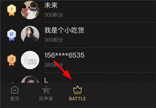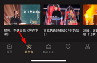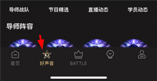 1、打开中国好声音app,点击屏幕正下方的battle功能按钮。