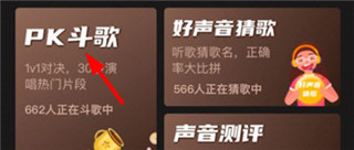 2、进入该页面后,找到PK斗歌功能,点击我们即可录歌开始PK了。