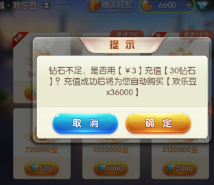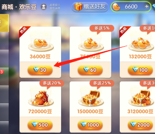 3、在商城,可以看到很多的充值项目,选择需要的项目充值,这里可以看到充值30钻石就可以买到36000豆。