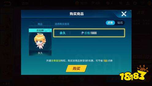 丘比特目前可以直接在商城购买,永久售价是11800点卷/1080钻石