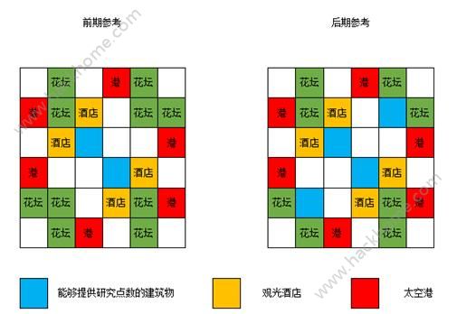 以上空白区域可根据用户布局喜好套用道路或不能摆放建筑物的地形,而在后期的开拓中,类似布局也可以不断调整修改以满足用户的不同需求。再后期的布局需要用户多多探索,如有更多发现要记得告诉小编,集思广益把更多布局参考补充上来哦!