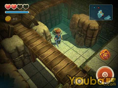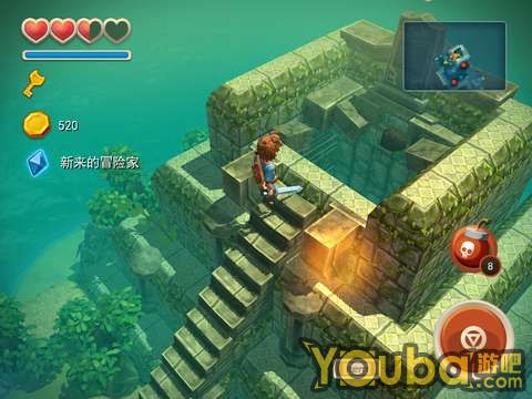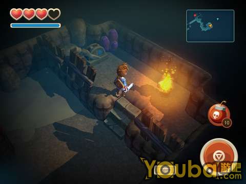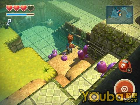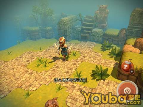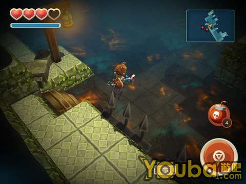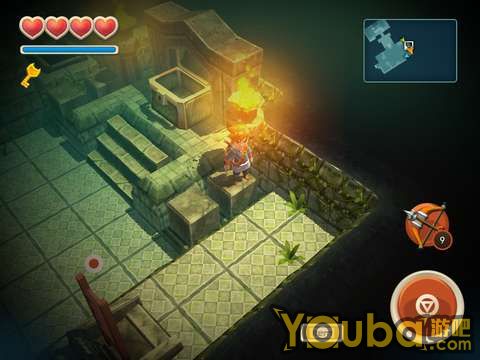 出洞后会遇到一个骷髅兵,干掉它就能得到一把钥匙。骷髅兵比较强,建议用户用炸弹直接砸死他。