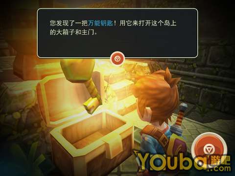 在地下室里,用户能获得万能钥匙,绿色的箱子终于可以开啦~爬后面的楼梯上去就能直接回到刚刚有绿色箱子的那个地方。