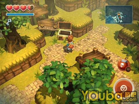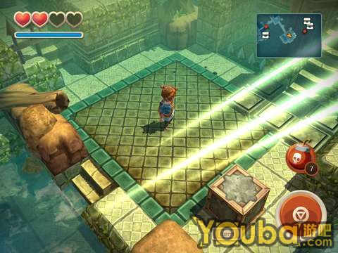 射击箱子左侧的箭靶,就能让箱子两侧的石头升上来,这时候箱子右侧的路也变成可通行的了。