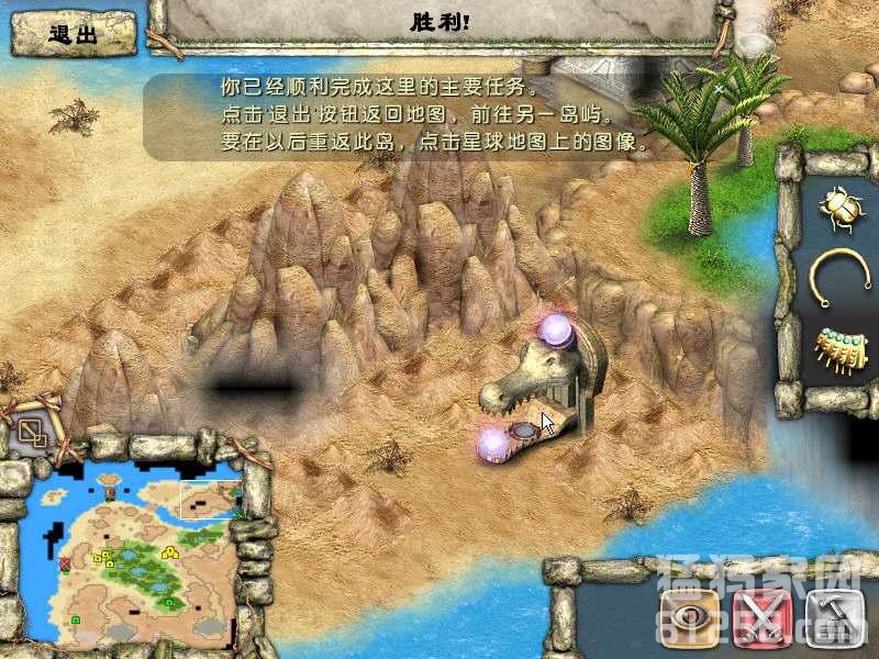 如果正确无误,那么会有一个金字塔被点亮(画面会自动移动过去)。点击金字塔,得到护身符碎片。在隐藏关卡:大沙漠和隐藏关卡:废弃之城相应得到其余两个碎片之后,我们再回到本关,在这个压制机器上,将所有的护身符碎片放进去,压制成一个护身符。