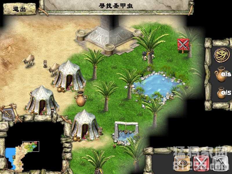 继续探索到这个位置,找到沙漠中的绿洲商队。商队给我们两个罐子,一个8升一个5升,要求我们弄出4升水来。