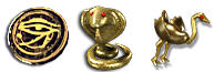 从左到右,分别是荷鲁斯之眼(7个),眼镜蛇雕像(9个),鸵鸟雕像(11个)。在绿洲营地,沙漠里,山脉里,到处都有。请瞪大眼睛仔细寻找……