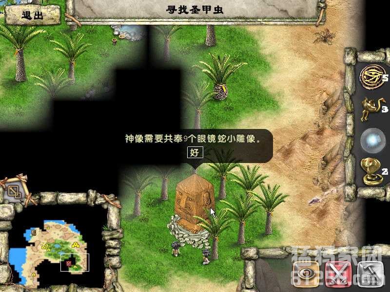 我们既然自己无法战胜,那就只有靠神像了嘛。这个时候应该已经有了9个眼镜蛇雕像,去激活雷暴神像吧。如果还没有,那么就仔细寻找一下,或者使用千里眼神像的力量,到处看看。