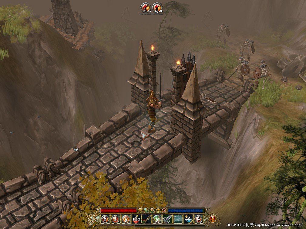 拿到钥匙之后回到大门那里,打开背包点下钥匙任务就完成了。然后回到村里又有新任务,说门关了是好,没东西吃也不要紧,但是不能没水喝,遥远的北方有一处水磨,你去那里把怪杀光好让它重新运转。话说这游戏老是提到北方北方,我一开始还以为还有东南西呢,后来才知道所谓的北方只是沿着唯一的路一直走而已。。。一路杀过去直到你遇见一头驴。。把周围脚下泛金光的怪全杀了,任务就完成了,顺便接下送驴回家的任务。和驴对话后它会跟着你,把它带回村里另两头驴那里就可以了。回去老头又说话了,哎呀从前我有个机友啊(误),为了梦想独自出去闯荡江湖,这不几天没见到他了,我心里甚是思念,你帮我去看看吧。反正一条路,走到底有个村子,这里就遇见关底BOSS了,胖子一个,攻击高,动作慢,使得一招霸王菊花残,一屁股飞过来把你坐倒在地,但是只要能动了就走开,他是来不及补你一棍的。反正也不难,不过事先有海量小怪,搭配齐全,各种都有,喜欢冲进去拼的准备几个红也就行了。杀完回去交任务,老头长叹哎没想到当年那个XXX也堕落了。然后把去蜘蛛森林的路指给了你。村子上面有2个石狮子,轮番抚弄之后魔法桥就把路连通了这样就可以去第2章了。