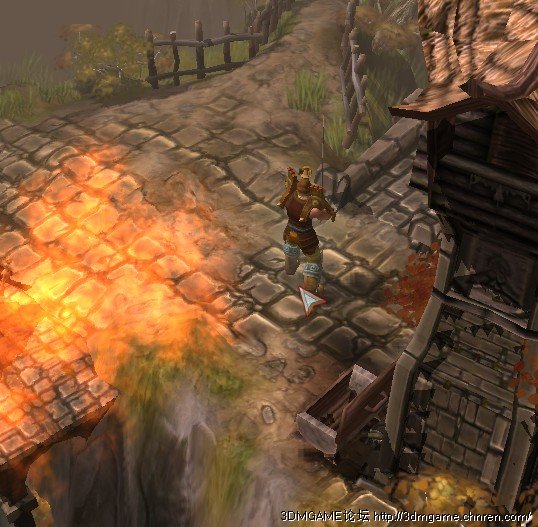 这里要补充一下的是这个游戏是有副本的,第一章有一个是在通往“北方”路上唯一的一个小岔路上。每一章都有1个以上的副本,副本怪物等级是随任务等级提升的,里面有几个精英怪(也就是小BOSS)这类怪物很大几率掉蓝装一件,较小几率掉金色绿色。第一章副本只有一个精英怪,在下图岔路往最右路口走。