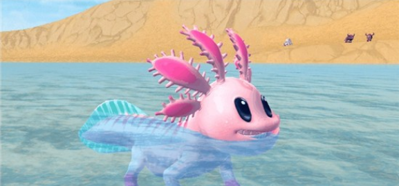 全身都是少女的颜色-淡粉色,胖嘟嘟的,短小的四肢,拖着长长的尾巴,身上有蓝色条纹,而且还有更稀有的大顽皮蝾螈,花纹都不一样。