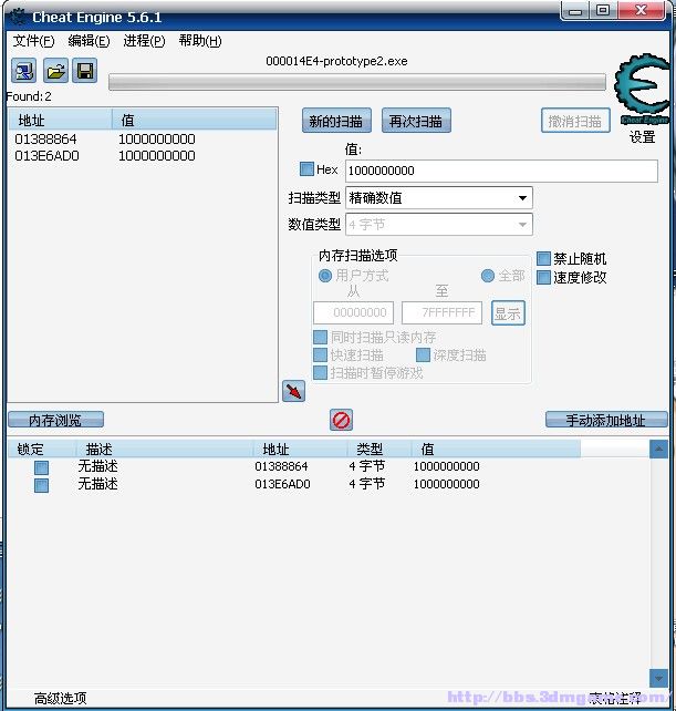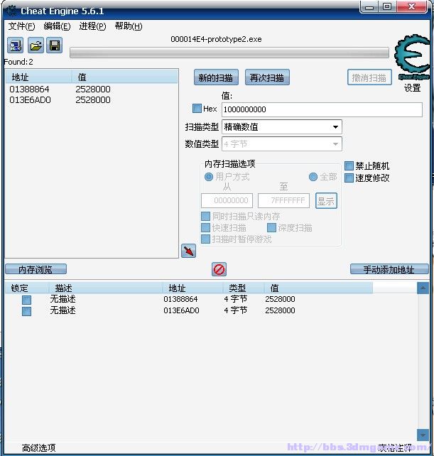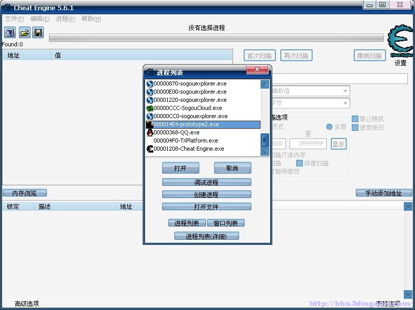 3.切出游戏 打开 CE 修改器 选定 虐杀2的进程