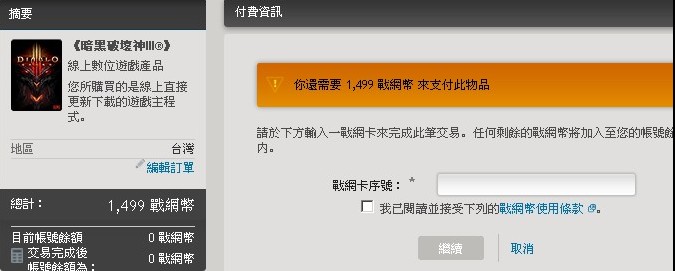 10、此时,你将跳入购买页面,前提是你有1499的战网点数。具体充值流程,你可以选择台湾支付宝进行快速购买,也可以在淘宝上买比较便宜的价格,根据自己的喜好。个人是用支付宝买的,1150点=252元左右,450点=95左右。
