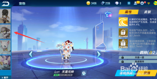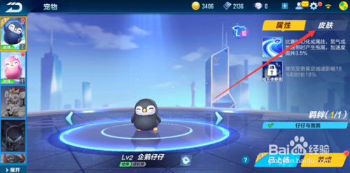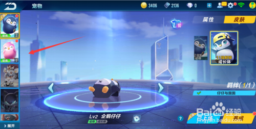 进入宠物界面后,就可以看到我们获得的宠物,点击皮肤,查看成长体的样子。