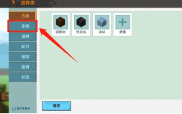 3、在插件库页面中我们选择左侧的第二个选项【生物】。