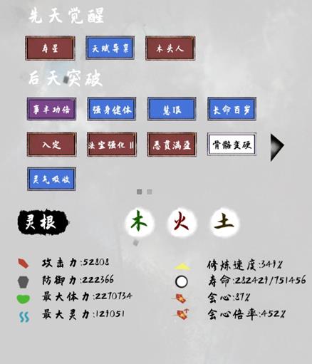 2.修为。木头人天赋是个好东西,触发机缘不会扣修为。越到后期越有用。
