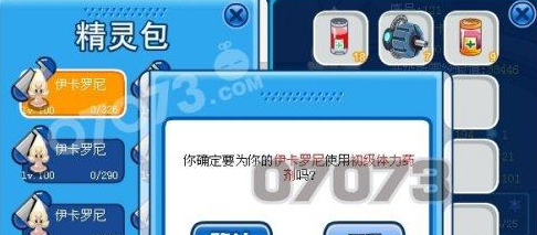 再用初级体力要(加20体力的)给六只没体力的精灵加体力。