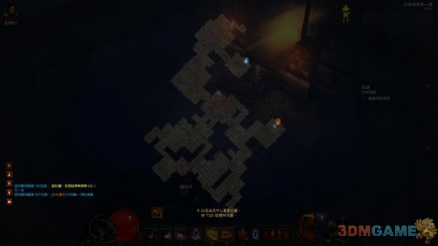 另外一个就是我们的目标“防御碉堡”,里面只有四种怪物:拿锤子的恶魔;蝎子;虫群;攻城兽。是的,你没看错,只有四种近战怪!我打这里的时候还是昨天FARM第二幕的那套装备,一件没换,蝎子虫群攻城兽大部分时候都是一击秒我(特别是虫群,本身场景黑暗,不容易发现),所以进入一个新房间的时候请先用引导箭射几下,不要用脸去看,再来看看这个地城的地图