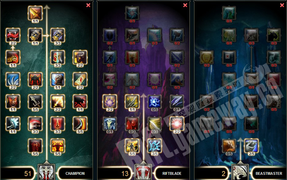 第三种配点 强力的单体和群体伤害能力,并可以获得怒气增益,缺点是比较依赖于宠物,自身buff:Enraged Companion, Slayers Bearing, Stormblade。