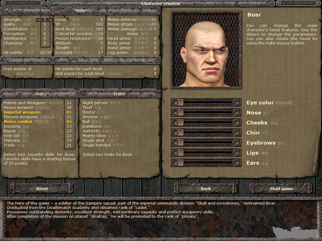 自己翻译的,不过自己英文水平超差,玩家们凑合着用,不过这游戏一定要善用save和loding,不然就省多点子弹。初期多用近身武器,总觉得这个游戏和辐射系列差不多,不过比辐射难很多。到目前的进度,已经死了N+1次,怎么这游戏玩家们讨论这么少,虽然它的画质可能比其他大作差一些,不过他的内涵不错啊。虽然看不明白英文,都是1字党,上面的翻译还差几个空,还望各位高手帮手补上