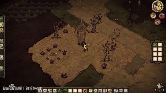新手总问哪里做基地好,我现在站的地方就不错,等你移植些浆果,做出回力镖来,靠兔子就能维持生计,而且离干草近,也很不错