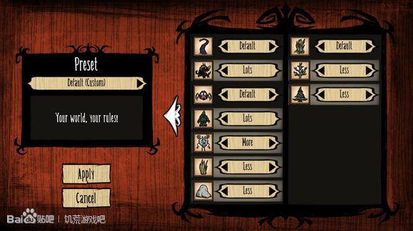 角色选新手向的威尔逊就好了,然后看了下地图设置里,貌似没有改变,还是按个人习惯选好设置就行了