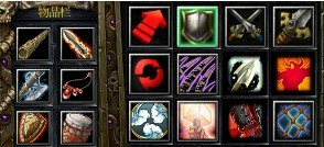 装备(死亡领主护盾;灼热之刀;远古战斧;魔法免疫项链;荣誉护盾;战歌之鼓)