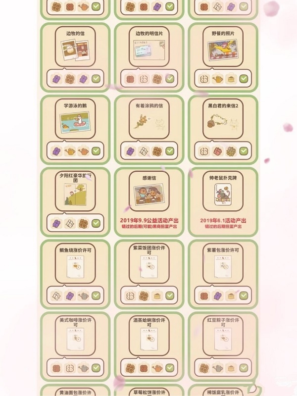 其次——配方中的常规花朵(菊黄红蓝)未标注都为四级,稀有花朵(白樱绿雪枫)酌情自己选择,级数越高飞到信件概率越大,带回来星也多。