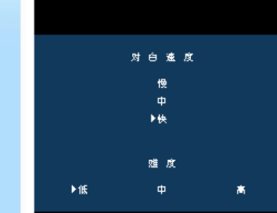 2.再按向上键选择,对白速度选择快,对于新手可以选择低,对于高手的话,可以选择高,选择好了按确认键,如图所示