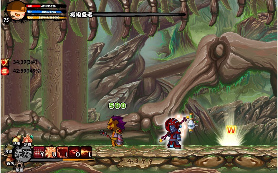 说下打小怪技巧:一个七十二变然后跳到空中重斩,因为这样可以躲过小怪的攻击又可以补血小怪攻击太高了。打boss就一开始就用旋风打他左一下右一下,如果你连不到就赶紧烈焰闪躲到边边,因为他准备放雷了,如果雷跟来用烈焰闪闪到另一边,等雷消失了就用旋风左一下右一下的打他,如果木有魔了就脱了衣服再穿上。