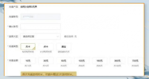 月卡收费专为月卡区用户设计,提供15元、30元、60元三个档次供选择。具体而言,15元可享5天游戏时间,30元可玩15天,而60元则可获得30天游戏权限。月卡采用按天计费方式,平均每天费用约为2元。请注意,月卡一旦购买,无论是否登录,时间都会持续消耗。因此,对于那些长时间无法上线的用户来说,选择月卡可能并不合适。