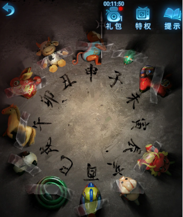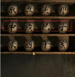 11、将娃娃放到供台上会出现图案,根据图案把柜子上的物品摆成下图样式即可获得布球。